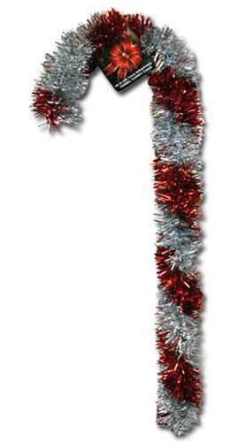 Product Description : Tinsel Wrapped Candy Cane 18" Christmas Decoration (Red/Silver)